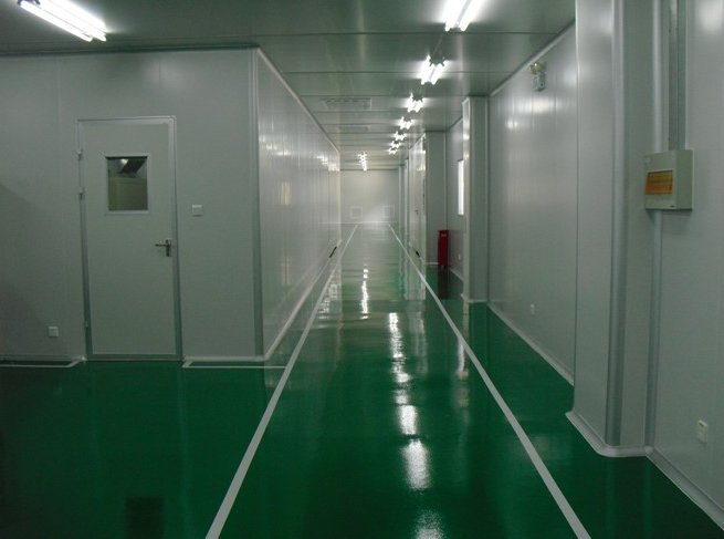 無塵車間的圍護(hù)結(jié)構(gòu)和室內(nèi)裝修材料宜選用氣密性良好,同時(shí)在溫度、濕度等變化時(shí),本身變形小的材料;墻壁和頂棚表面應(yīng)光潔平整、不起塵、耐腐蝕、耐沖擊、易清洗。為了使無塵車間的建筑表面盡量少積灰、易清掃,應(yīng)在建筑結(jié)構(gòu)造上避免或減少凹凸面,墻面與地面、墻面與頂棚、墻面與墻面的相接處也不宜成一般的直角,宜做成半徑大于或等于50mm的圓角。壁面涂層的色彩要和諧、雅致、素淡,以便于顯現(xiàn)壁面上的污染物。同樣,地面也應(yīng)做到平整、無縫隙、耐磨、耐腐蝕、耐沖擊、不積聚靜電,宜除塵清洗。
